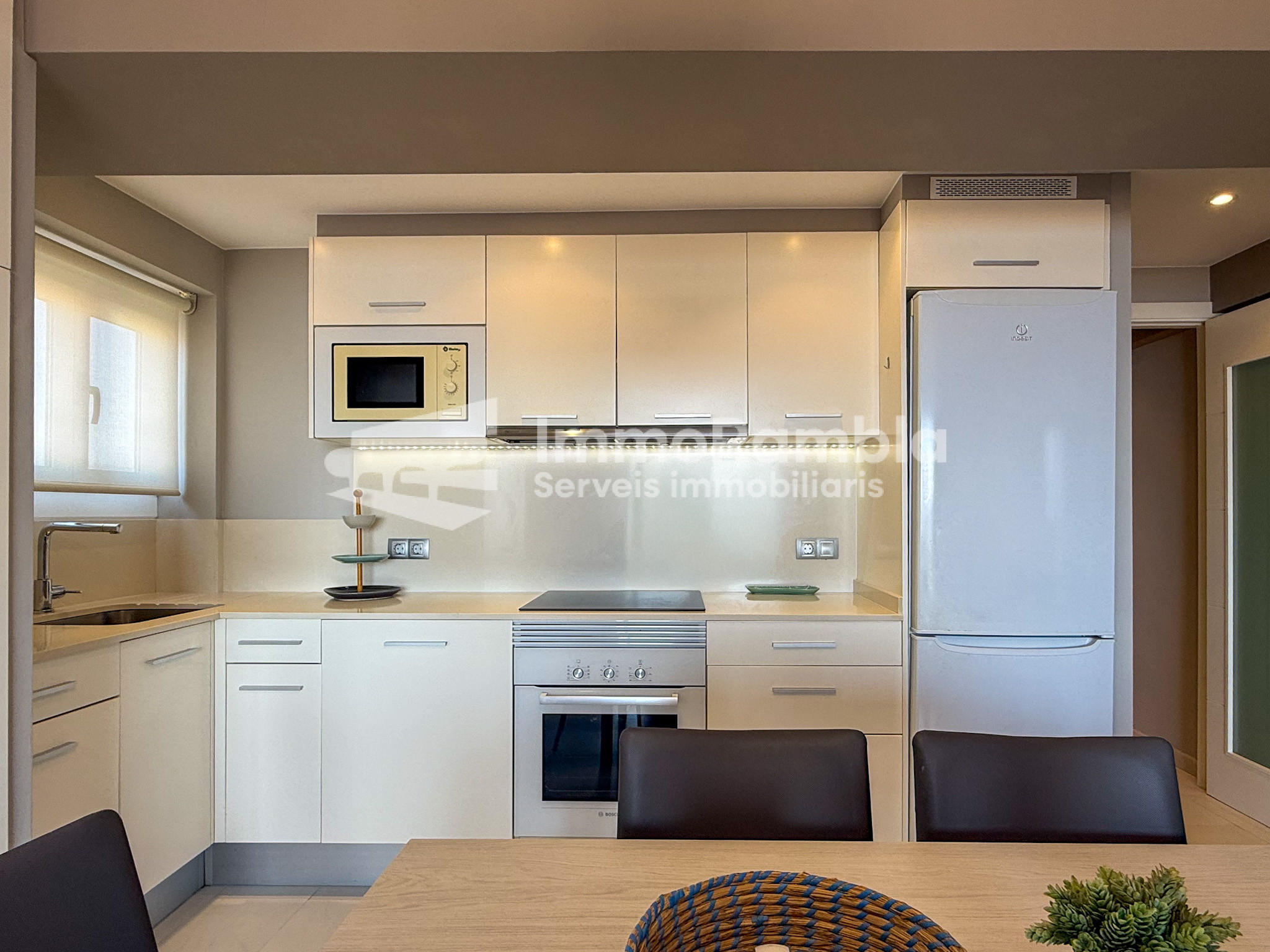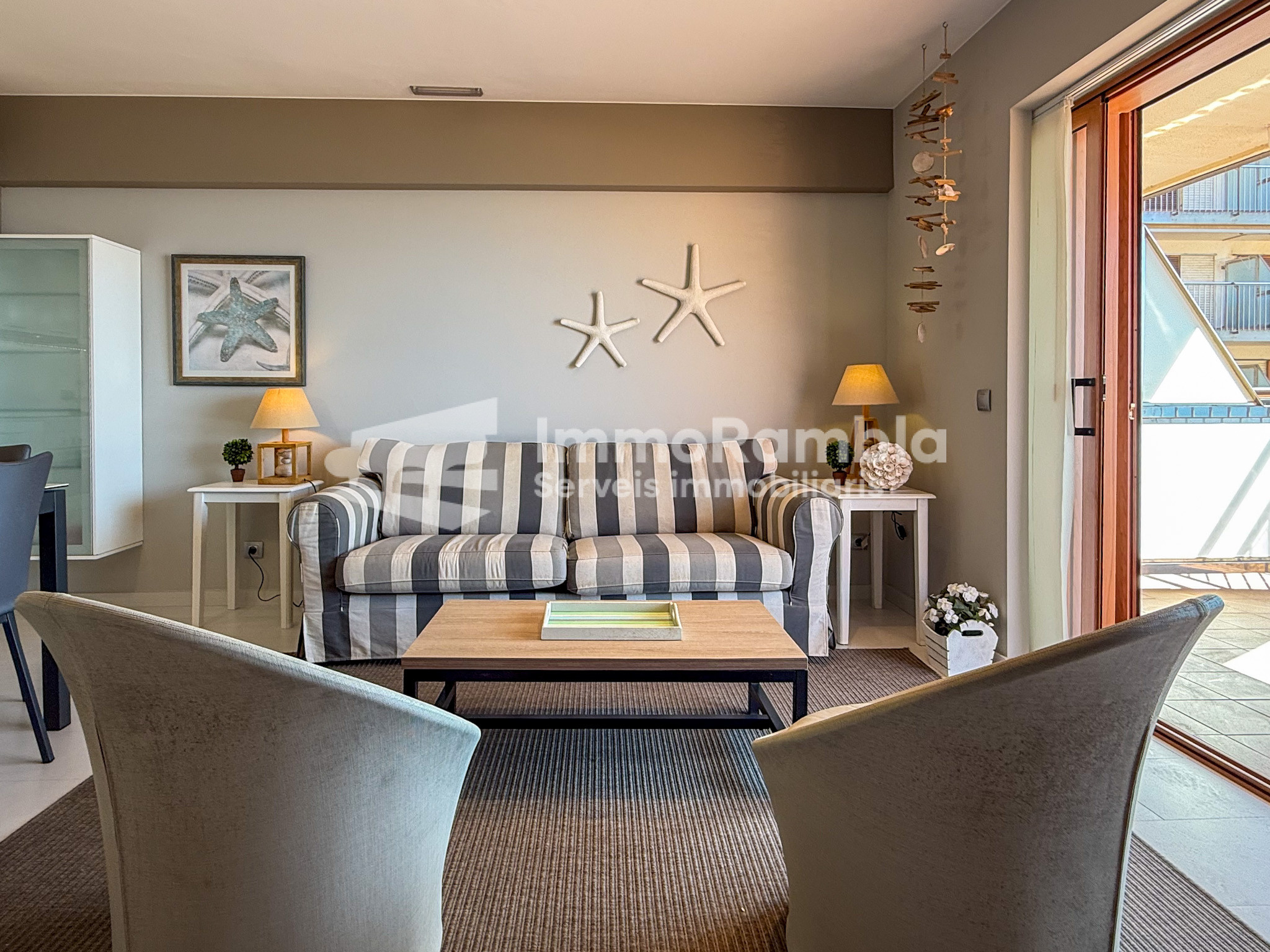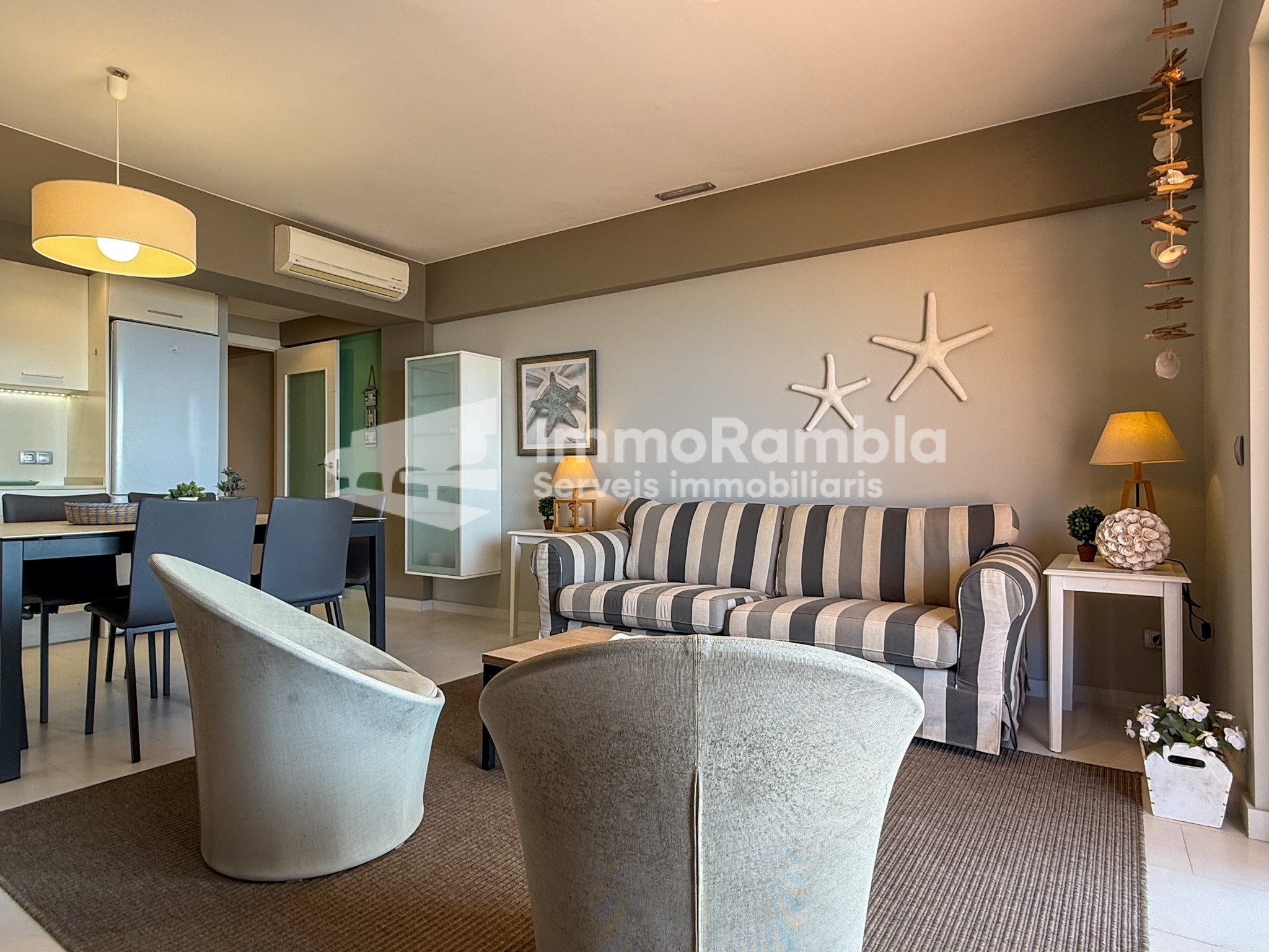 Descubre este encantador piso ubicado en la septima planta de un edificio con ascensor, que ofrece impresionantes vistas a la Platja Gran de Palamós. Con 76 m² construidos, este hogar es perfecto para disfrutar de la vida costera. Su interior es acogedor y sereno, ideal para relajarse después de un día en la playa. La zona principal combina un amplio salón y comedor, creando un ambiente perfecto para compartir momentos inolvidables con familiares y amigos.