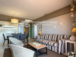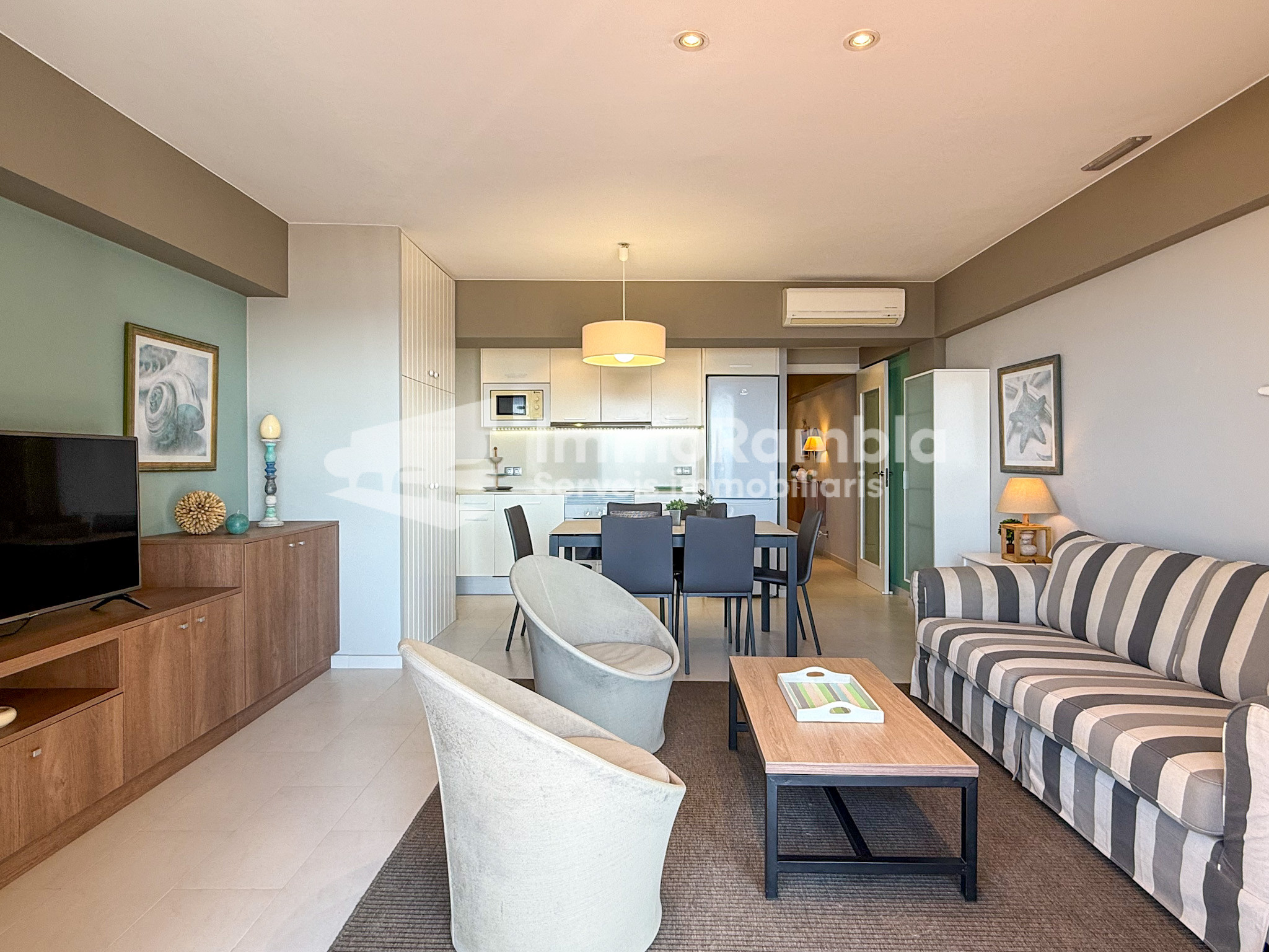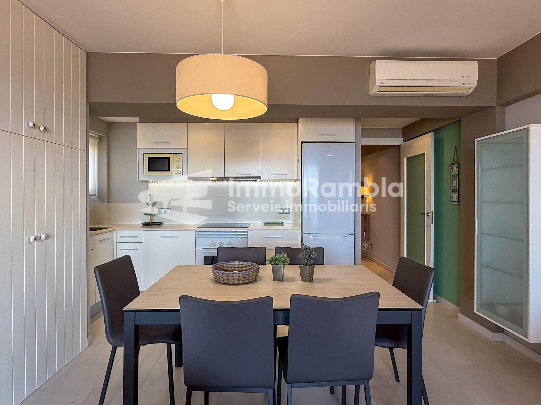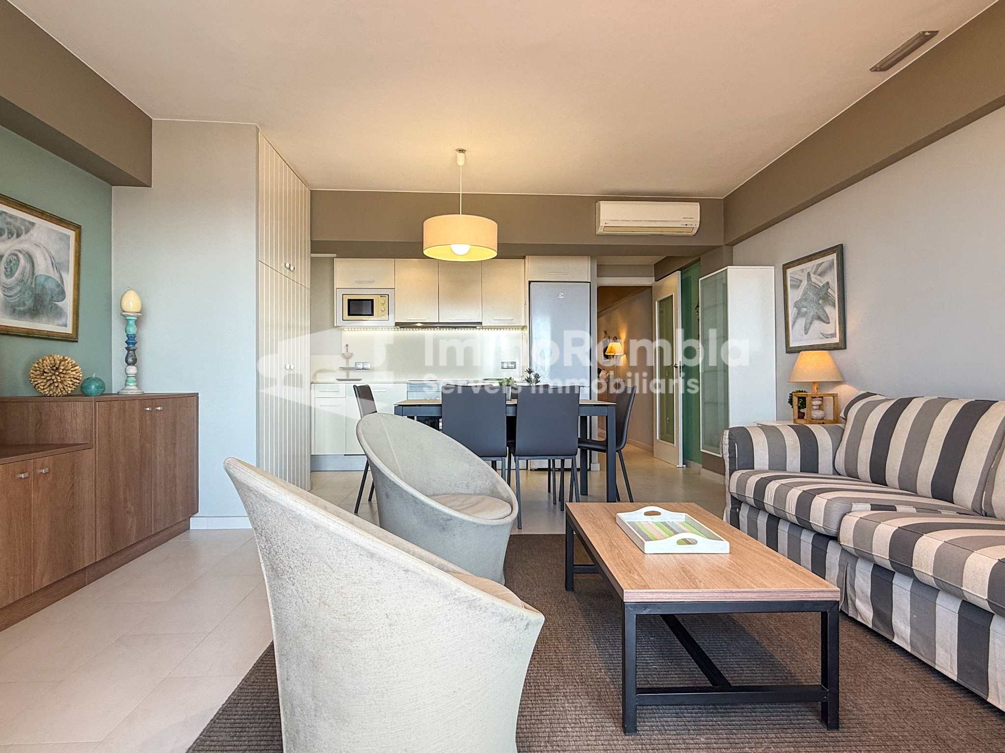 Descubre este encantador piso ubicado en la septima planta de un edificio con ascensor, que ofrece impresionantes vistas a la Platja Gran de Palamós. Con 76 m² construidos, este hogar es perfecto para disfrutar de la vida costera. Su interior es acogedor y sereno, ideal para relajarse después de un día en la playa. La zona principal combina un amplio salón y comedor, creando un ambiente perfecto para compartir momentos inolvidables con familiares y amigos.