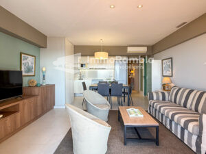 La terraza de 8 m² se convierte en un mirador al mar, donde podrás disfrutar de espectaculares amaneceres y atardeceres. La cocina integrada refuerza la sensación de amplitud y funcionalidad. Además, cuenta con tres dormitorios dobles, todos con armarios empotrados, lo que brinda versatilidad para alojar a la familia o recibir invitados. El baño está equipado con ducha, ofreciendo comodidad y estilo.